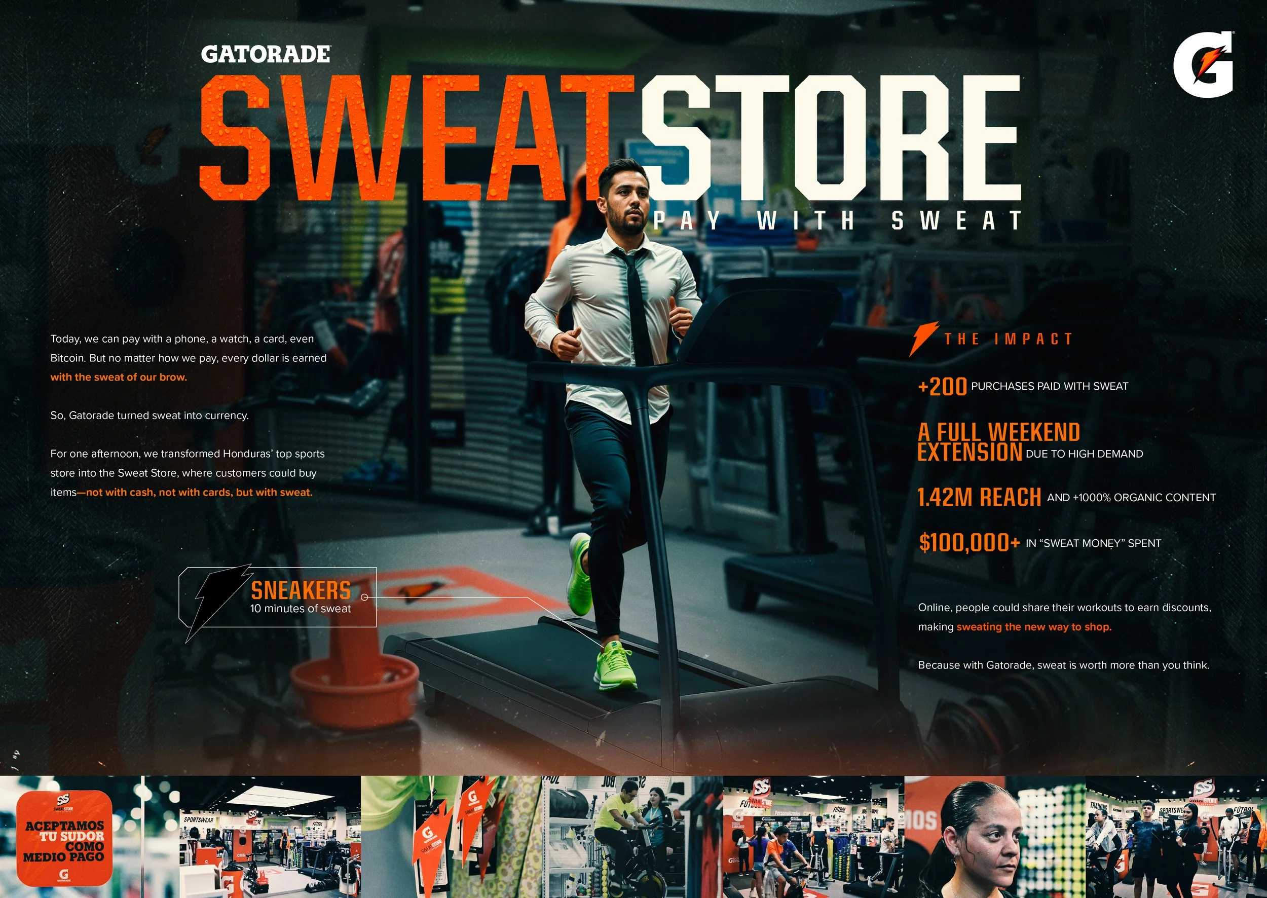 Gatorade creó una tienda temporal donde los productos se pagaban con sudor, transformando el esfuerzo físico en una forma simbólica de moneda.